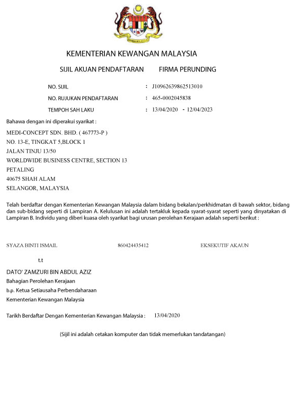 199801011645 (467773-P) 465-0002045838 (Ministry of Finance, Malaysia) |